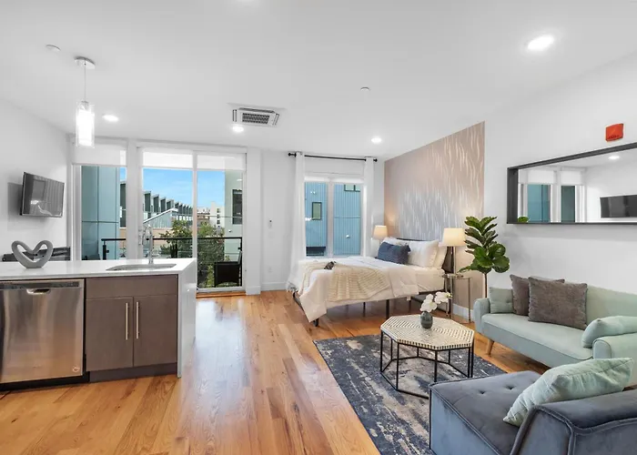 Located 6 km from Philadelphia, PA railway station, the 61 m² Stylish Studio - Pool, Gym & Balcony Bliss Philadelphia is only an 8-minute walk from Liberty Lands Public Park. Guests can make use of Wi-Fi for both business and leisure purposes.